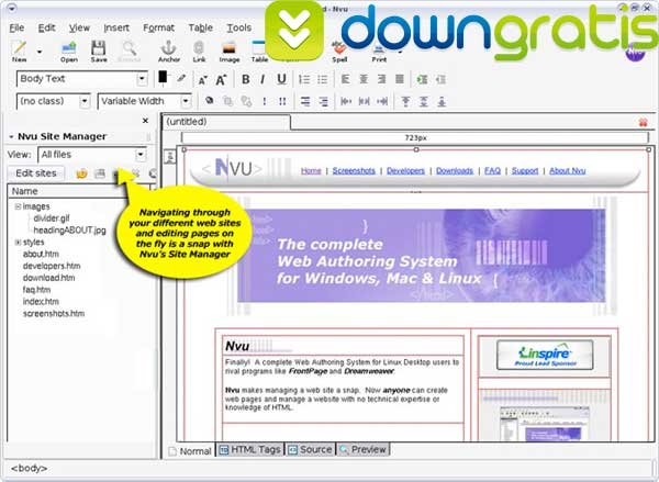 Para ajudar na aprendizagem e desenvolvimento em HTML você pode usar o NVU – Editor HTML grátis disponível também aqui no DownGratis.